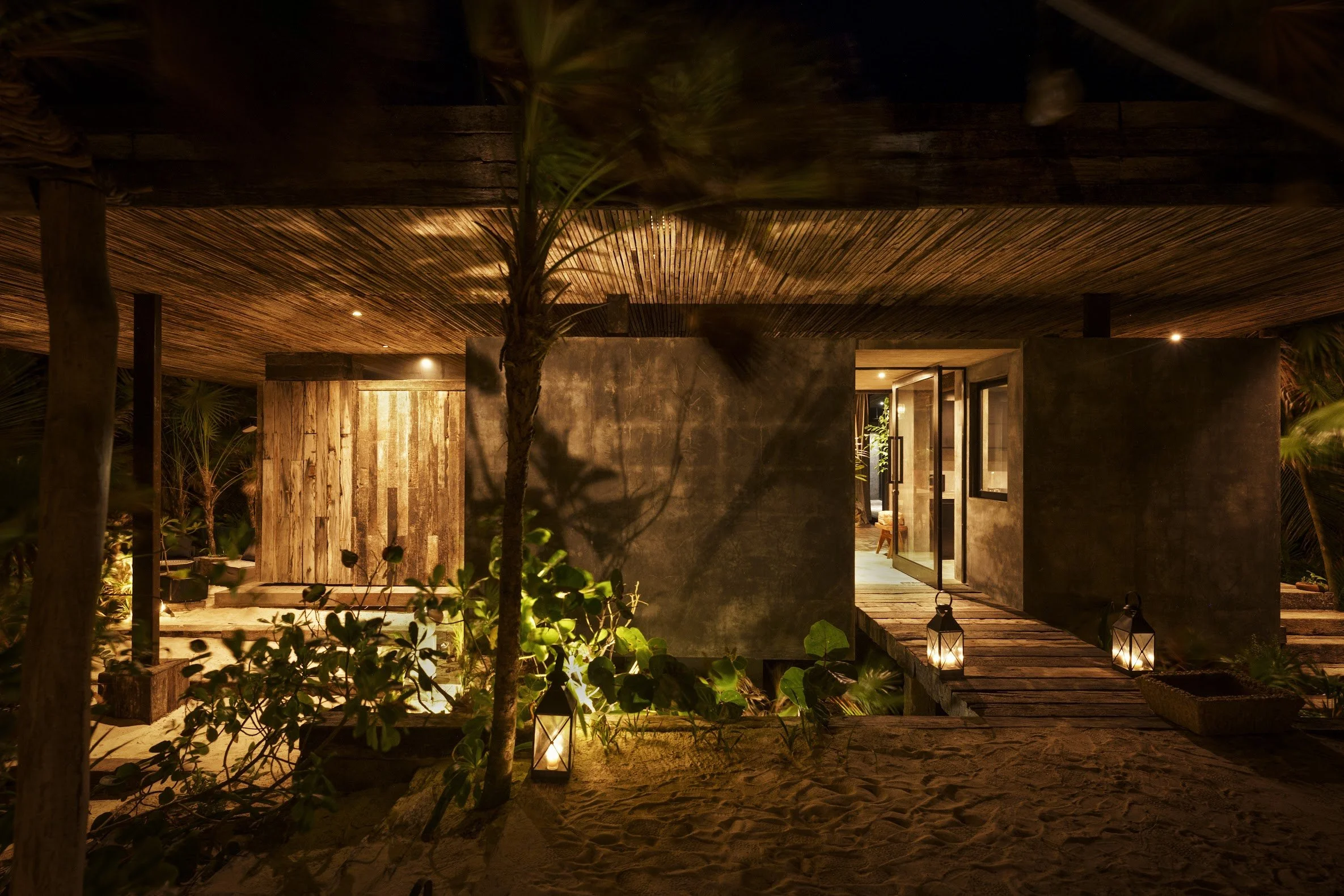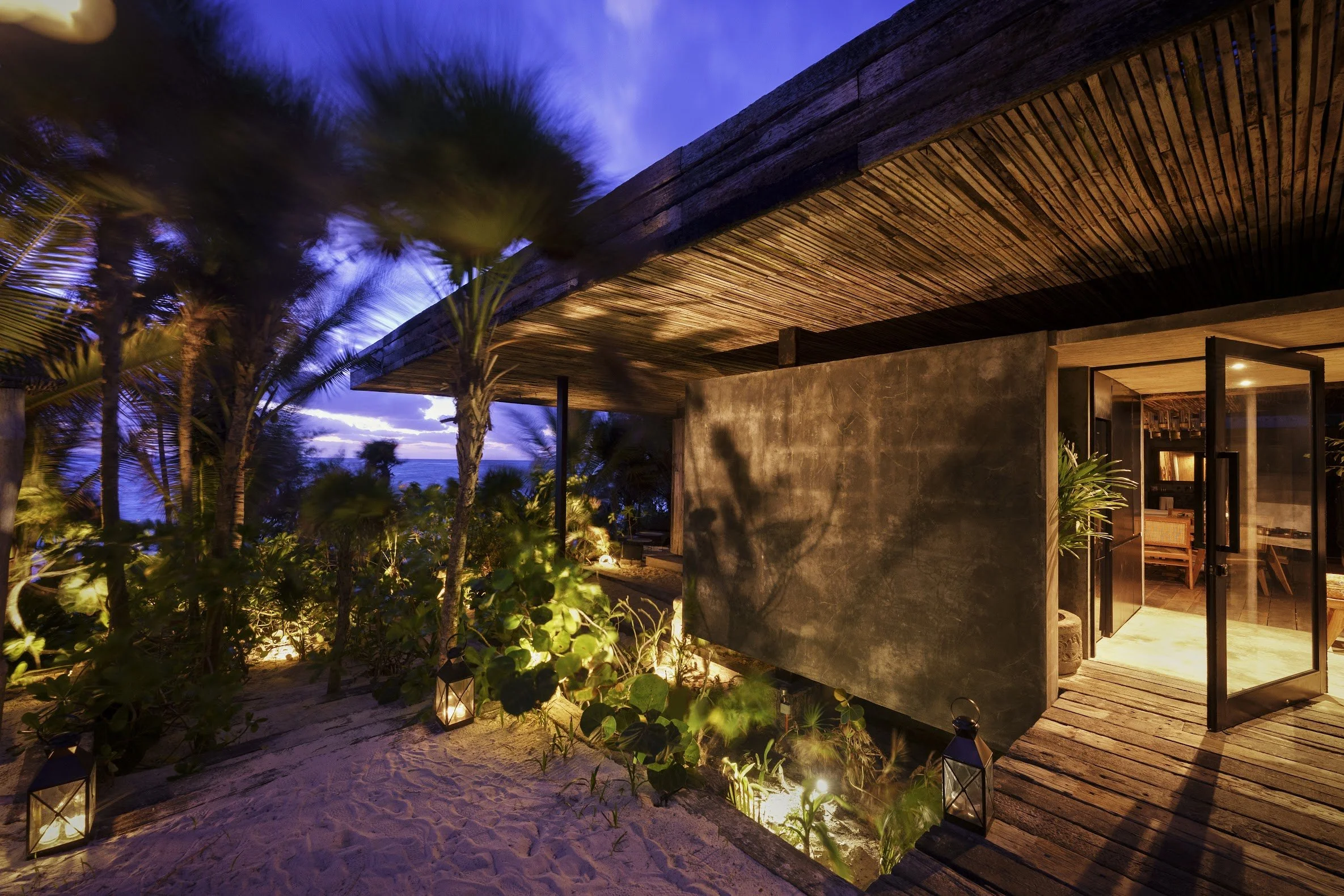 Renowned Architect of Be Tulum hotel and Nômade hotel designed this house to live in with his family. The exterior of the house is constructed out of wood taken from old train tracks. Every square inch was carefully designed, and each item carefully selected with love from all corners of the world including Marrakech, India, and across Mexico.